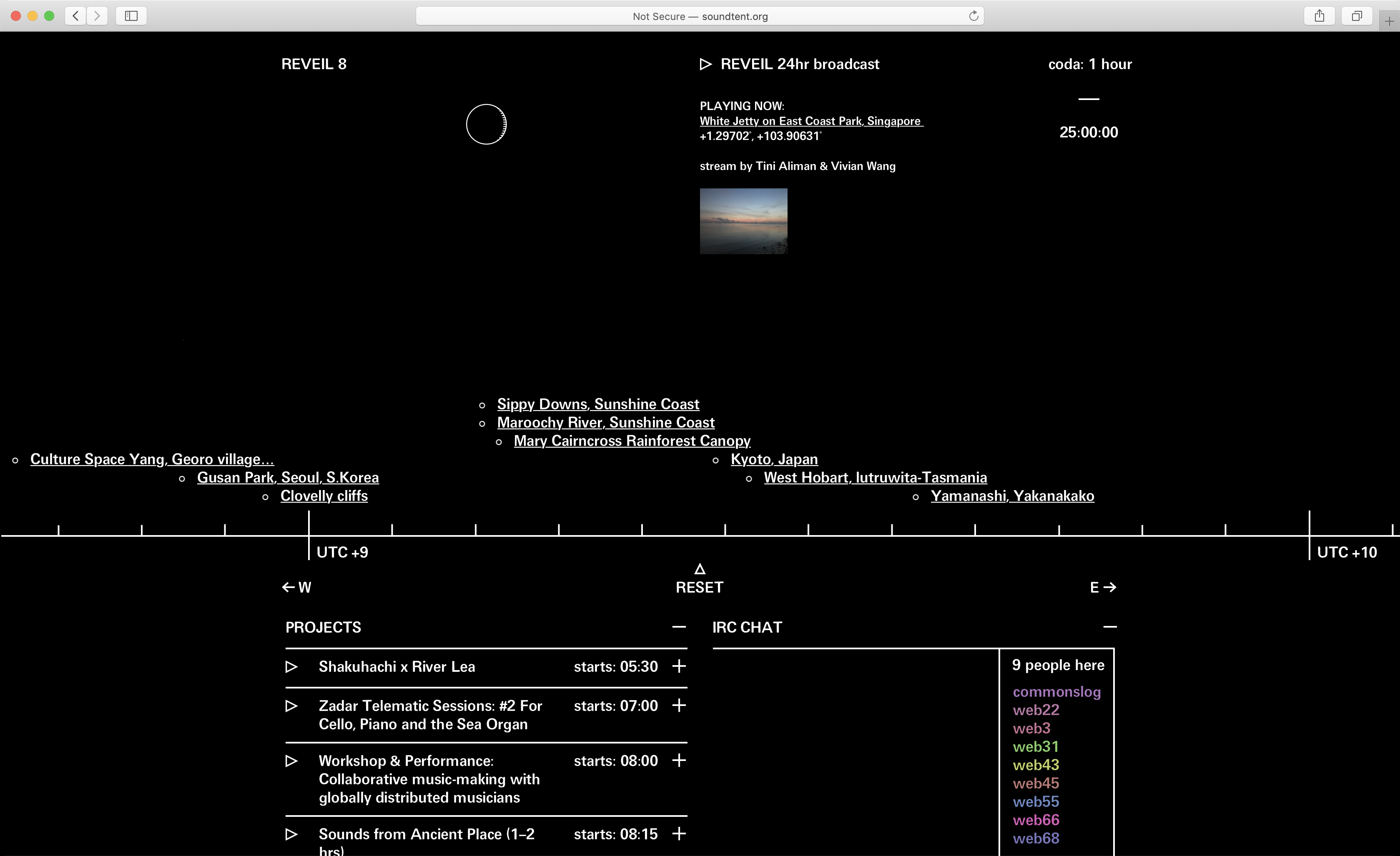 Reveil is a 24 hour live radio programme, assembled and broadcast from a temporary station at Stave Hill Ecological Park in Rotherhithe.